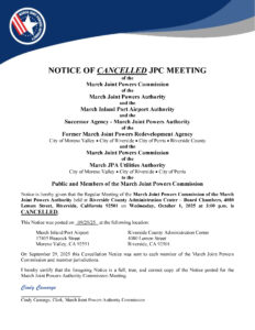 March Joint Powers Authority Commission Meeting 10-01-2025 – CANCELLED